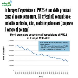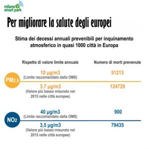 A Milano nel 2016 il 10-20% della popolazione è stato esposto a 41-50 ug/m3 PM10 e >25 ug/m3 di PM2,5. (ISPRA)